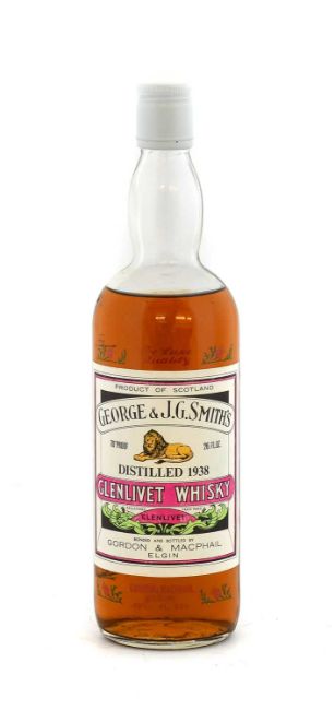 George & J.G. Smith's 1938 Glenlivet Whisky, Gordon & MacPhail floret stencilled bottling most likely from the 1960s, 70º proof, 26 2/3 fl. ozs. (one bottle)
