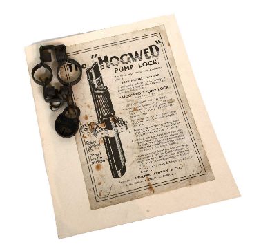 A Hogwed Bicycle Pump Lock, with advertising card